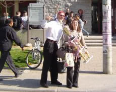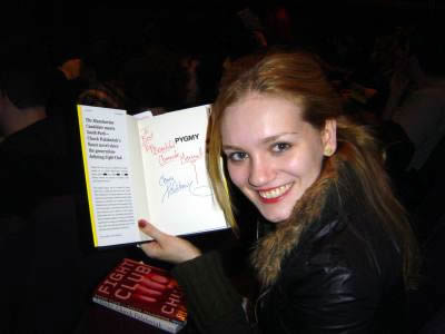 Last night I had the pleasure of attending my first Chuck Palahniuk event, hosted by McNally Robinson Booksellers at the Isabel Bader Theatre. Chuck’s new book, Pygmy, went on sale last week and his devoted (I’m not using that term lightly) fans were eager to get their hands on signed copies and meet their idol in person. I arrived two hours before the start of the event, and the line was already long. As per Chuck’s request, some of the attendees arrived creatively attired as U.N. delegates (an homage to the climax of Pygmy).