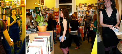 Sheila Heti, writer and creator of the Trampoline Hall lecture series, was next, reading selections from Darren O’Donnell’s Your Secrets Sleep with Me. In addition to being a writer, O’Donnell is the artistic director of Mammalian Diving Reflex, and one of Heti’s favourite theatre artists. Selina Martin, in white vinyl boots, then took the stage. Blame serendipity: Martin’s song was based on many of the excerpts that Heti had read. If the nodding head of the mustachioed man in the front row was any indication, they both pulled it off admirably.
